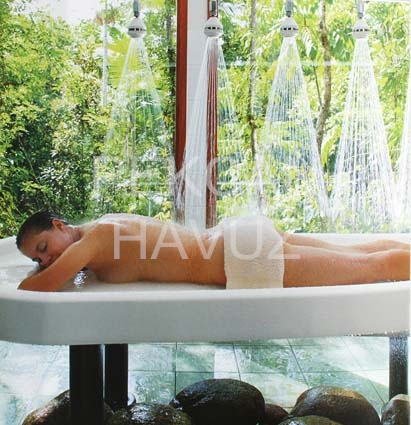 It is a shower system that allows the user to be given five shower heads by heating the sea water first to the front and then to the back with sprinkler principle. The first 10 minutes of shower therapy, which lasts about 20 minutes, are applied to the user’s front side and 10 minutes to the back side. Alternatively, sprinkler can be used with shower system.