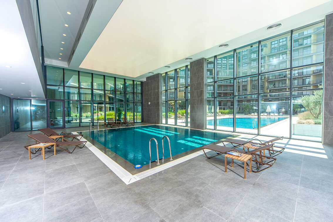 Tesisin spa merkezinde ısıtmalı kapalı havuz yer almaktadır.77,50 m3 kapasitelidir. Havuzun projelendirilmesinde genel kullanım için uygun, kapalı havuz standartları göz önüne alınmıştır. Bu havuzda da diğer havuzlardaki gibi, dezenfeksiyon sistemi olarak otomatik klorlu dezenfeksiyon ile kombine olarak ileri hijyenizasyon sistemi olan ozonlu dezenfeksiyon sistemleri kullanılmıştır. Havuzun aydınlatma sistemi, yeşil enerji dostu led sistemlidir. Havuz suyunun ısıtılması işlemi de firmamız tarafından yapılmıştır.