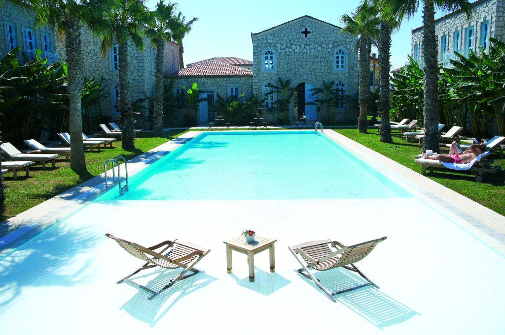 Alaçatı‘nın simge otellerinden olan MANASTIR OTEL’in yüzme havuzunda Pekcan imzası bulunmaktadır.